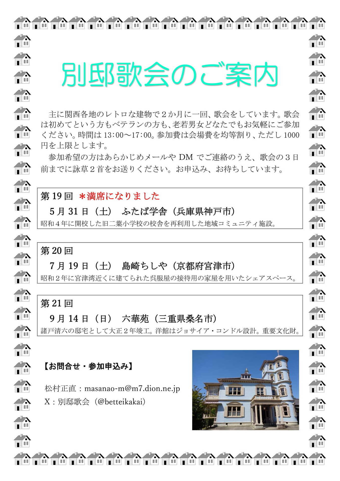 2か月に一回、主に関西各地のレトロな建物で歌会をしています。